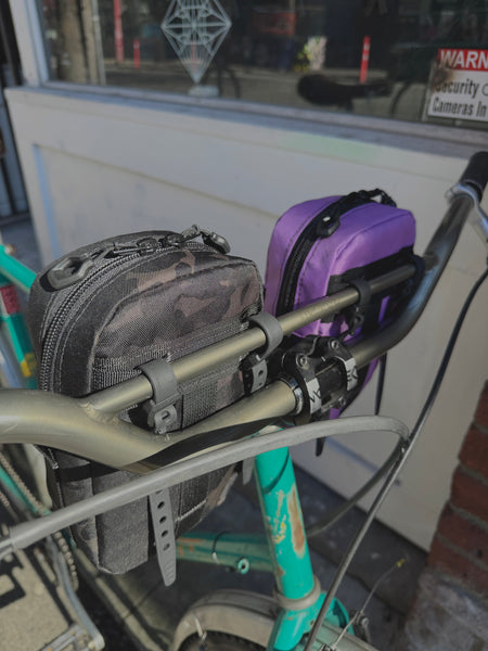 Why do all stem/feed bags have to be a drawstring closure? Well... they don't! Sometimes it's nice to keep your items secure and dry on the bike, and for that reason we've introduced the CANDY PACK ! Still fully operational with one hand while riding! Also, the shallower depth of this bag means no more knee to bag collisions while standing up and riding!